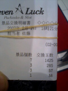 1台目、本日20回 202回転の台。 1kで15回転だったため移動。